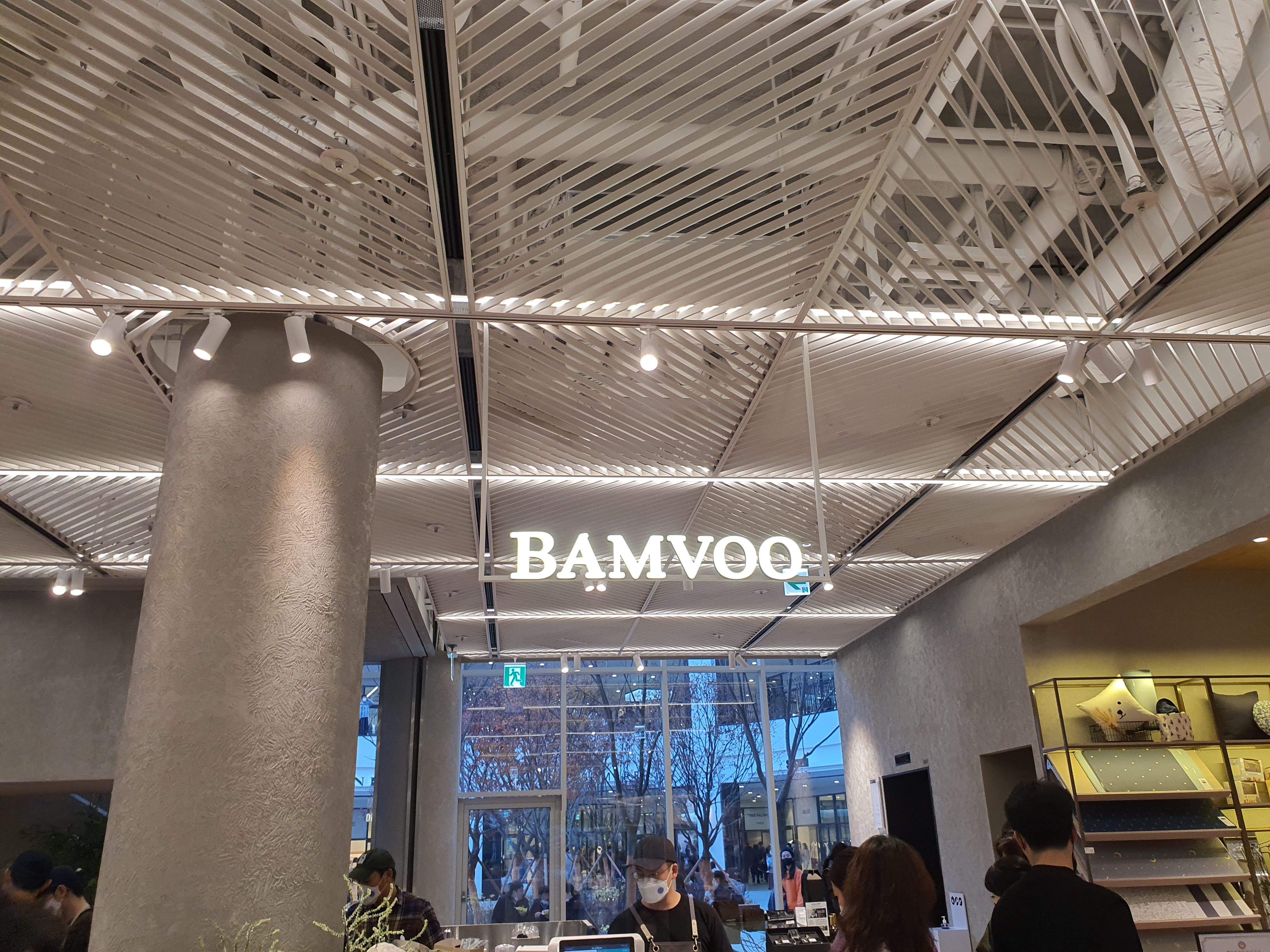특이해 보이는 큐브 모양의 통유리 건물은 4층까지 푸드, 쇼핑, 북카페, 서점 등으로 구성되어 있습니다.