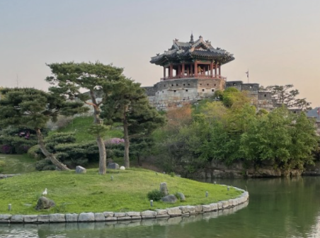 수원화성의 동북쪽 누각입니다. 방화수류정 근처로는 성곽길을 따라 예쁜 꽃들이 피어있어 사진을 예쁘게 찍을 수 있으며, 돗자리깔고 날씨 좋을 때에는 피크닉을 즐길 수 있고, 노을지는 아름다운 풍경도 볼 수 있는 많은 사람들이 방문하는 곳입니다. 야경도 참 아름답네요.