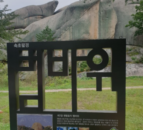 속초 8경 중 제 2경에 속하는 범바위는 상당히 큰 바위와 작은 바위들이 기이한 형태를 하고 있어 바위 자체를 구경하기도 하며, 바위에 올라 정자와 더불어 쭉 펼쳐진 시야로 영랑호의 풍경까지 감상 가능하여 절경을 느낄 수 있는 한번 쯤 들러볼만한 곳이다.