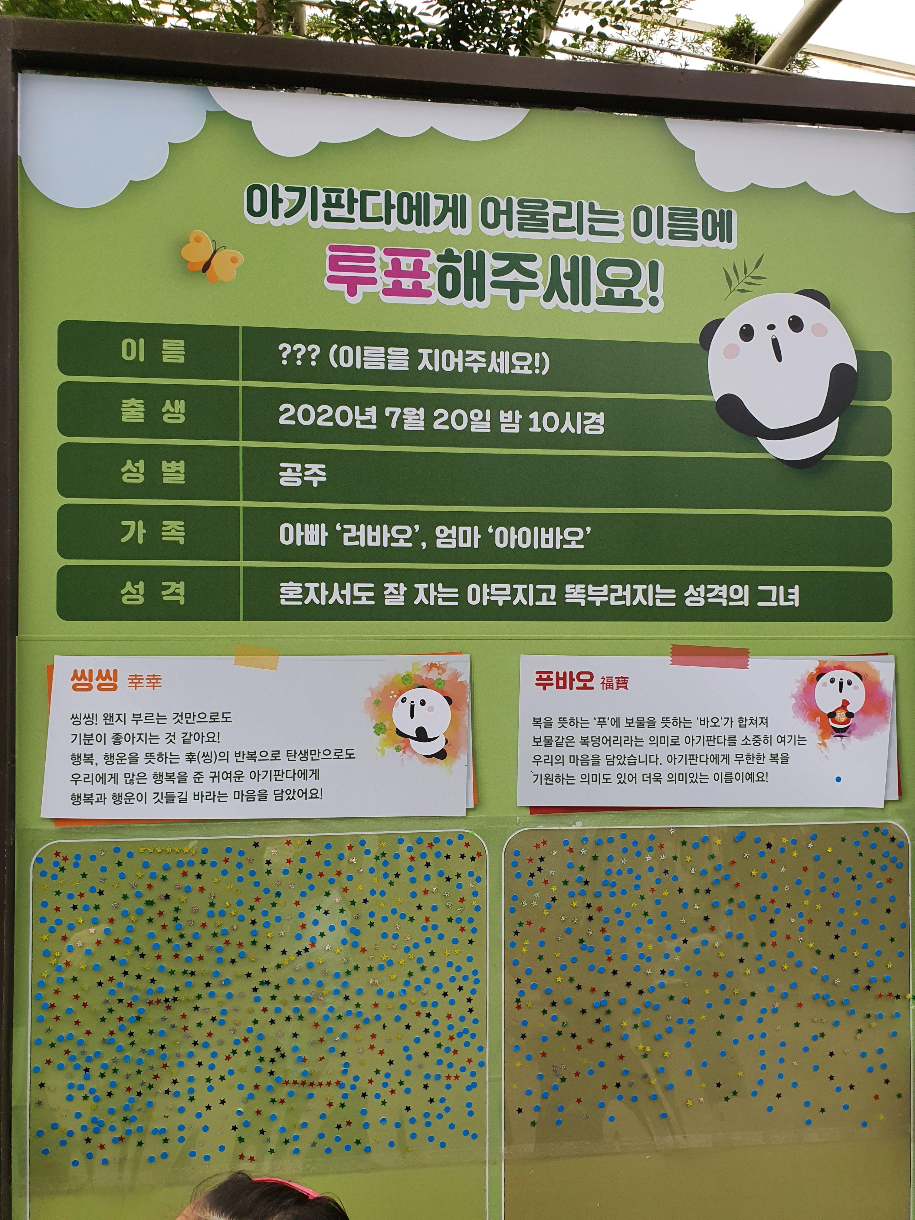 팬더가 새끼를 출산해서, 산후조리중이라는...이름 짓기 투표도 하네요.