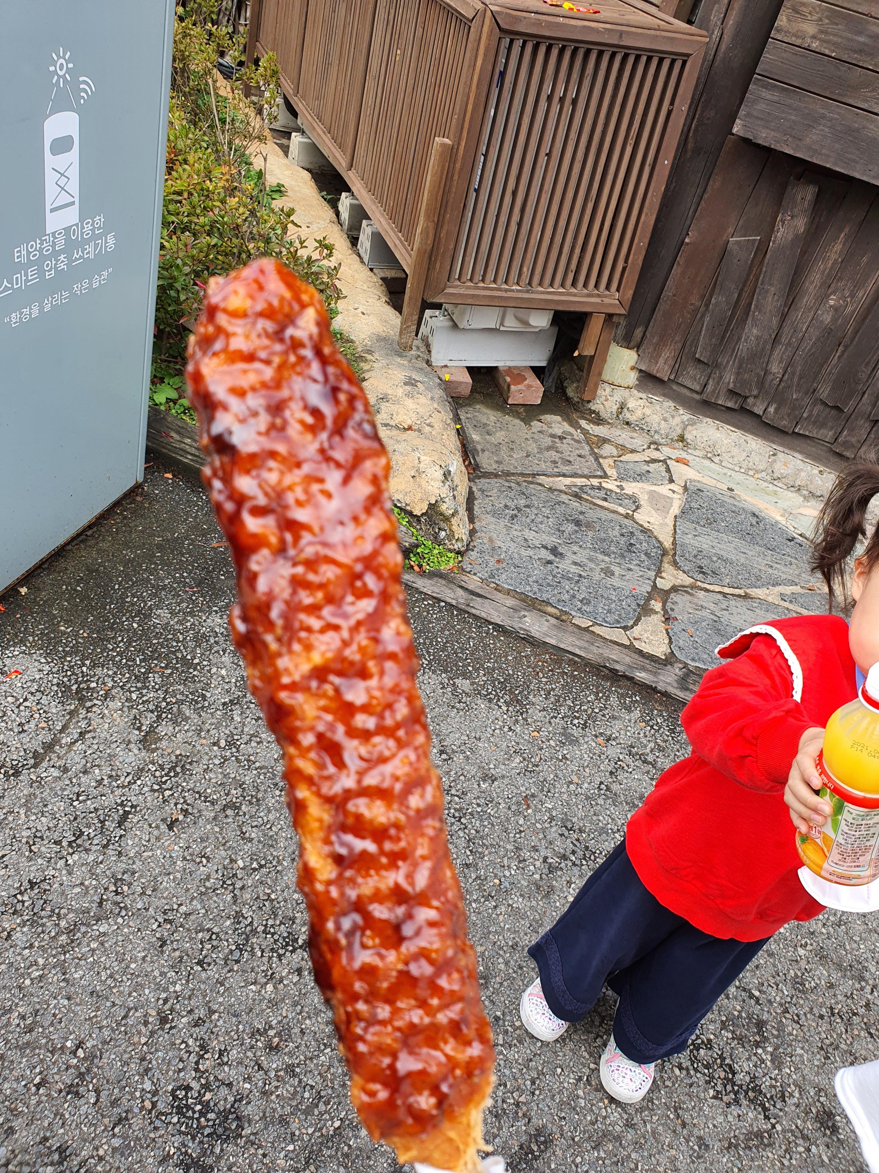꼬치랑 핫도그(설탕과 치즈와 빵가루가 범벅되어....너무나 맛나다는)